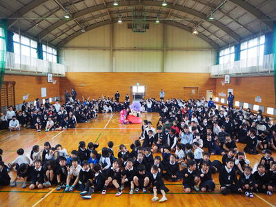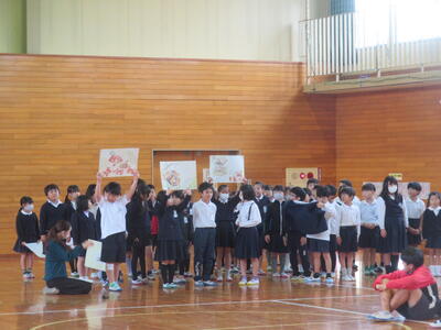 人権学習で学んだことを、各学年から発表しました。真剣に聞いている姿が見られました。