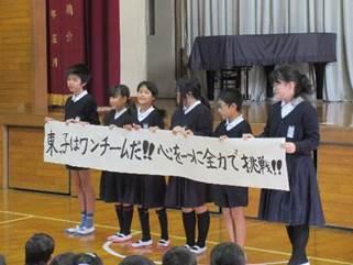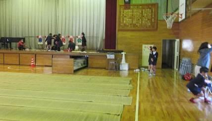 いよいよ東っ子発表会当日となりました。約2週間、各学年体育館で練習を重ねてきました。本日は、自分たちが学習してきたことを精いっぱい「全力で挑戦」して発表してくれることと思います。さて、金曜日の午後から5・6年生が準備をがんばってくれました。ござやイスの準備はもちろん、飾り付けや掃除など積極的にがんばる姿が見られました。縁の下の力持ちとはまさにこの姿だと感心した次第です。午後1時10分スタートとなります。昨年、保護者用のイスが不足したため、今年度は保護者のござ席も準備し、イスも多めに並べています。運動場に駐車した後、クラブハウスの入り口からご入場ください。たくさんのご来場お待ちしています!