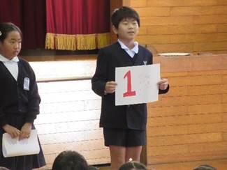 縦割り班のリーダー発表
