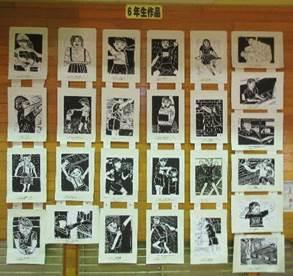 以前ホームページでもお伝えしましたが、東っ子発表会に向けての取組と同時進行で、各学級郡版画展に向けての作品づくりをがんばってきました。先週、その版画展が開催され、本校からも代表作品が出品され、たくさん入選することができました。そして、東っ子発表会当日は、体育館壁面にみんなの作品が掲示されましたので、来場いただいたみなさんはご覧いただけたことと思います。今年度のスルーがんである「全力で挑戦」の姿を何ごとにも発揮してくれる子どもたちです。とても素晴らしい作品展示となりました。