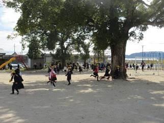 昨日の昼休みに、運営委員会主催のたてわり班遊びがありました。給食後に運動場に集合し、まずは運営委員会より説明があり、全校児童でけいどろをしました。1つの班と先生たちがが警察となり、残りの泥棒を捕まえます。捕まった人はサッカーゴールのところに来ますが、名札にシールを貼ってもらうと復活できるというルールでした。たてわり班遊びというよりも、もはや全員遊びという感じでしたが、みんな元気いっぱい運動場を駆け回っていました。毎週水曜日は外遊びの日で、学級ごとに鬼ごっこやドッジボール等で盛り上がっていますが、全員で遊ぶというのも楽しかったようです。運営委員会のみなさん、企画・運営お疲れさまでした!