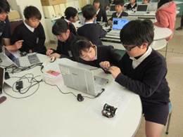昨日、2時間目~4時間目に5年生対象にプログラミング教室が行われました。これは、来年度から新学習指導要領が全面実施されることに伴い、教育委員会が教育NPOの講師の先生方に依頼してくださり実現したものです。授業では、「コンピューターが家の中にいくつあるか?」という質問からスタートし、コンピューターの大まかな仕組みを学びました。その後は、実際にプログラミングをしてロボットを動かしたり、シアトルと中継をしてコンピューターで使用される2進法による数字の数え方を学んだりと盛りだくさんの内容でした。子どもたちは、ロボットの動きをプログラミングするときに、動きのスピードを変えるなど試行錯誤しながらコンピューターに親しみ、あっという間に時間が過ぎたようでした。