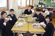 全国学校給食週間の取組のひとつとして、火曜日に会食が行われました。毎日給食を作ってくださる調理員さん4名と、日頃からお世話になっている児童育成懇談会の4名が来校くださり、各クラスに分かれて入られ、本校児童と給食を一緒に食べられました。児童育成懇談会のみなさんの中には、「給食を食べるのは何年ぶりだろう?」と楽しみに参加してくださった方もおられました。お客さんと一緒にいつもとは少し違った雰囲気の中、楽しい給食の時間となりました。