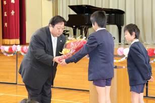 昨日、平成30年度の退任式が行われ、3名の先生方とお別れをしました。本校2年間勤務の田中校長先生は、今度は矢部小学校へ行かれます。同じく本校2年間勤務の川田先生は、新規採用として広安小学校へ行かれます。同じく本校2年間勤務の田中信吾先生は、本校での勤務を最後にご退職されます。3名の先生方の最後のお話を聞いた後、児童代表がそれぞれの先生にあいさつをして、校歌斉唱で式を締めくくりました。そして、児童全員で作った花道を通って3名の先生方が退場されました。3名の先生方、お世話になりました!これからも、健康に留意されてがんばってください。
