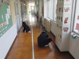 おなかで息をする練習をする2年生