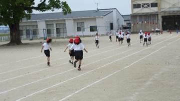 2年生が運動場で体育の授業をしていました。2年生になって2週間が過ぎ、すっかりお兄さん・お姉さんらしくなった2年生です。先生の話をしっかり聞いて、一生懸命体を動かしていました。今週末から始まる10連休が終わると、すぐに運動会の練習が始まるということで、走る練習をしていました。去年までと違い、たくましさを感じさせてくれる2年生です。