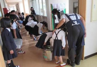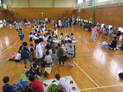 昨日は、残念ながら雨のため、かんげい遠足は中止となりましたが、、2時間目に「1年生をむかえる会」を行いました。最初に1年生の自己紹介が行われ、続いて全員でゲームを行い、楽しい時間を過ごすことができました。進行は、運営委員会ががんばってくれました。そして、お昼には全員で体育館でおいしいお弁当をいただきました。