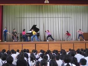 月曜日の4時間目に、本校体育館でスクールコンサートが行われました。平成音楽大学の子ども学科の学生さん11名が来校され、楽器演奏や歌唱を披露してくださいました。毎年恒例のコンサートを子どもたちも楽しみにしていました。今回は、子どもたちにも馴染みのあるリコーダーやけんばんが登場したり、子どもたちが知っている歌もたくさん歌っていただいたりととても楽しいひとときでした。中には体を動かして一緒に歌う子どもたちもいました。また来年もよろしくお願いします!