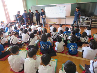 この日は、JAかしま青年部の方にお越しいただき、子どもたちに説明をしたり、子どもたちの質問に答えていただいたりしました。子どもたちも、熱心にメモを取っていました。