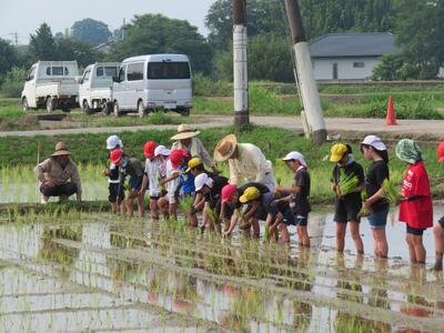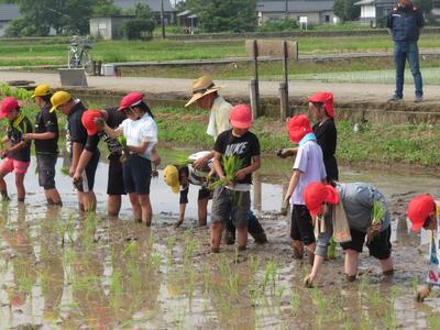 折からの猛暑で、短い時間での体験となりましたが、泥んこになって丁寧に植え付ける姿が見られました。