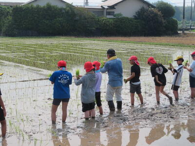 下六嘉活動組織の皆様のご協力で、5年生が今年も田植えに挑戦しました。