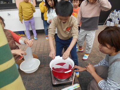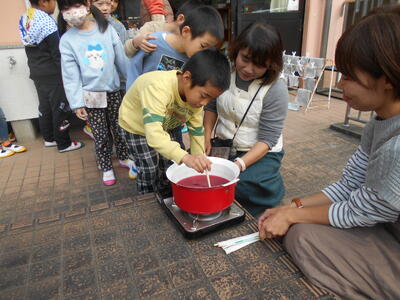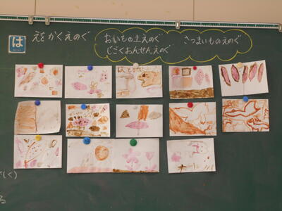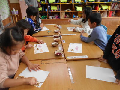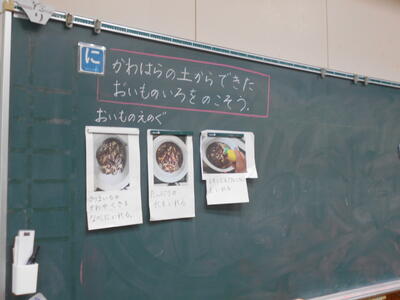 1年生は、この1年間、生活科や図工の時間を中心に、さまざまな色に着目しながら学習を行っています。12月8日(月)は、「河原の土からできたおいもの色を残そう!」というめあてで、からいもからとれた色で染め物をしたり、河原の土と別府の土で絵を描いたり比べたりしながら活動を行っていました。この日は、色研究会の方々も来られ、「ふるさとを愛する心を育むことにつながりますね」というお声も聞くことができました。また、地域の方や保護者の方にもお手伝いいただきました。ありがとうございました。