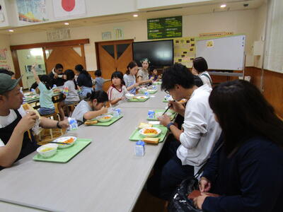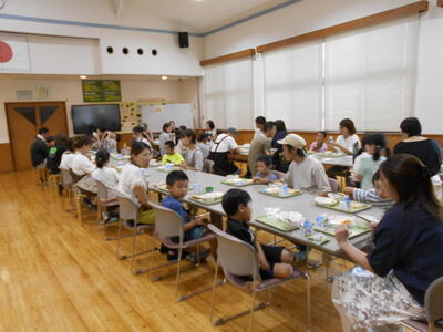 三連休明けの9月16日(火)は、PTA給食委員の方々による給食試食会の2回目でした。今回は、1・2年生の保護者の方々に参加(希望参加)していただきました。この日の献立は、「トマトパン、オムレツ、野菜のスープ煮、人参サラダ」でした。前回同様、給食委員の方に進行していただきながら、和気あいあいとした雰囲気の中で行われました。子どもたちもいつもと違う雰囲気での給食で、とても嬉しそうに食べているのが印象的でした。こうして「食」を楽しめることに感謝しかありません。このことから、家族での食事も、子どもの幸福感につながる大切な時間だなと改めて思いました。
