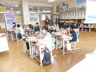 9月22日(月)、3年生の国語科の研究授業が行われました。物語教材の「ちいちゃんのかげおくり」の場面を比べて読むことを目標とした授業でした。少人数にもかかわらず、子どもたちが自分の考えを伝え合ったり、自分の考えの根拠に戻ったりしながら、丁寧に進められていた授業でした。また、この時間だけでなく、これまでの学習の足跡が掲示されており、いつでもこれまでの授業を振り返りやすい工夫も見られました。この日は、スーパーティーチャーの白石先生にも来たいただき、前回同様校内研究会に参加していただき、探究的な学びに向かうための指導や国語科の特性を生かした指導法などを教えていただきました。