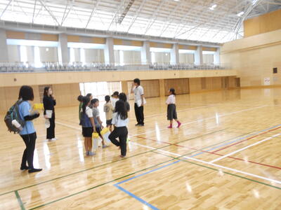 9月11日(木)、音楽集会が開かれました。今回は、1年生の発表がメインでした。4月の入学以来、音楽の時間に季節の歌を歌ったり、リズム遊びをしたり、楽器演奏をしたりしてきた1年生。今回は、タンブリンでリズムを刻みながら「ぶんぶんぶん」の発表などをしてくれました。少々緊張気味の1年生でしたが、一生懸命発表する1年生も、それをしっかり聞いている2年生から6年生の姿も素敵でした。また、今回の音楽集会から、「ハロー、ハロー、ハロー、ハロー」と、みんなで和音あいさつをして始まることになりました。これから益々楽しい集会になりそうな予感がします。