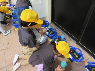 みんなうれしそうにお水をあげたり、芽の観察をしたりしていました。「たねから芽が出てすごかった。」「たくさん芽が出てうれしかった。」「花がさくのがたのしみ。」と言っていました。1年生の子ども達の成長とともに、あさがおもぐんぐん成長していくことでしょう。