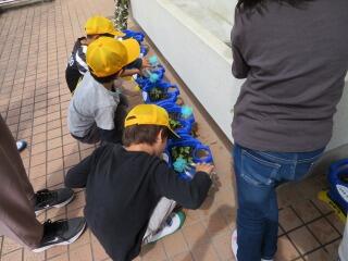 3年生は理科で「しぜんのかんさつ」を学習しています。自然の生き物(植物・動物)の色・形・大きさをじっくり調べて似ているところや違うところを探します。今日は天気が良かったので、絶好の観察日和でした。3年生の子ども達は一生懸命観察をして記録をがんばっていました。