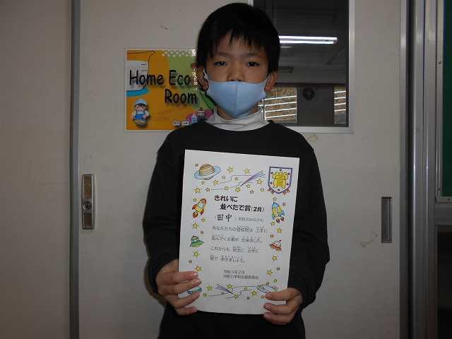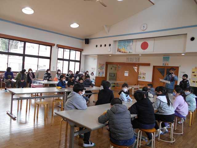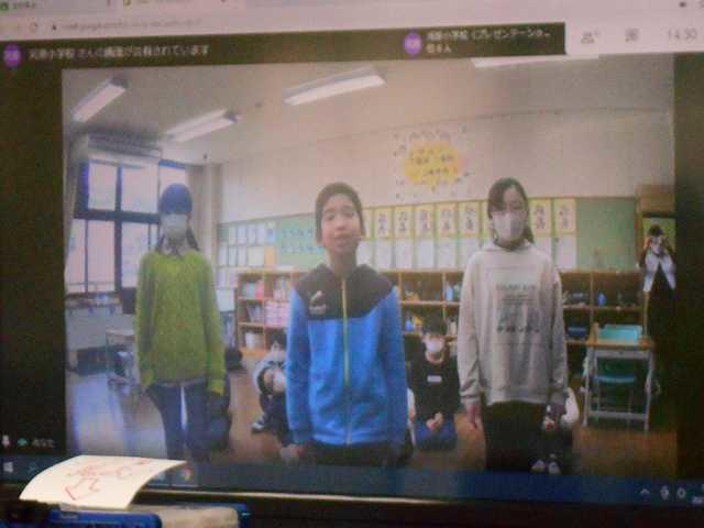 2月児童集会を行いました。リモート集会にもすっかりなれた子どもたちです。それぞれの委員会からの報告やお願いと、村の人権作文・標語の表彰、企画委員会主催で行った「並んで登校大作戦」の表彰がありました。