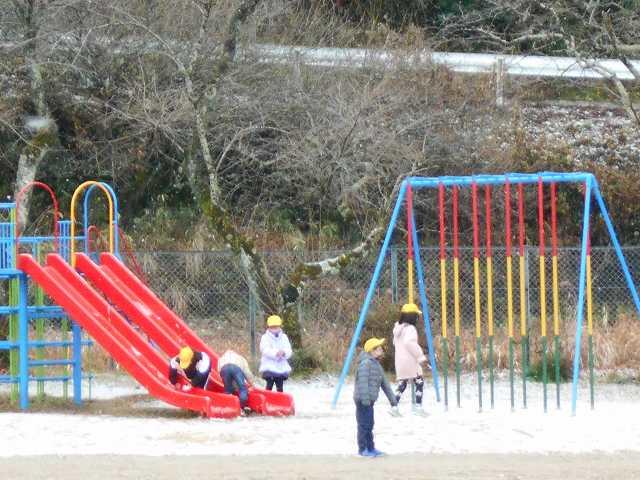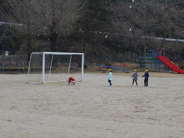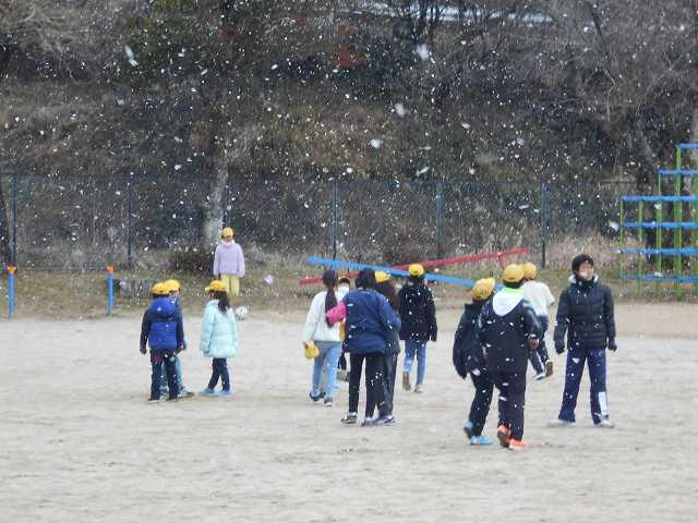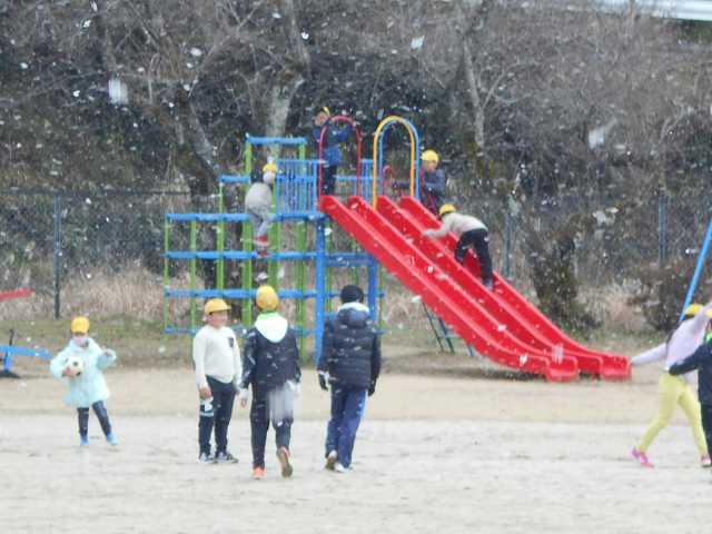 先週の暖かさからうってかわり、昨日、今日と寒い日が続きました。雪も降りました。昼休みにちょうど降り出したので、子どもたちは寒さも忘れてほぼ全員が雪の中、運動場に出て遊んでいました。遊びもそれぞれで、学級でドッジボールをする子どもたち、滑り台や遊具で遊ぶ子どもたち、学年が混じってサッカーする子どもたちと・・・いろんな場所で思い思いの遊びが繰り広げられていました。子どもたちは今日も元気です!