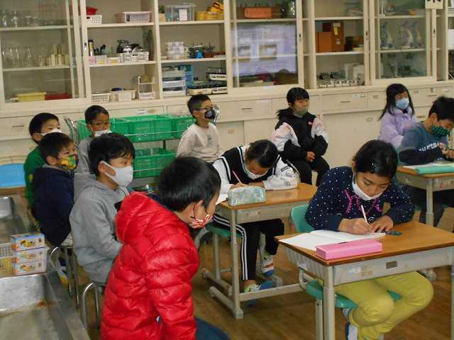 1月18日(月)、2年生が3年生の理科の授業を参観しました。4月から理科の授業が始まる2年生。理科ってどんな学習をするのかな???わくわくしながら3年生の授業を見学しました。3年生は今、「ものの重さ」の学習をしています。今日の学習は「形が変わるとものの重さはどうなるのかな?」という学習課題のもと、実験をしながら課題解決していきます。電子てんびんの使い方も上手に楽しく学習をしていました。2年生も4月からが楽しみですね・・・