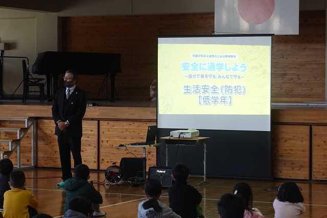 1月21日(水)、不審者対応避難訓練を行いました。大津警察署の生活安全課スクールサポーターの方に訓練を指導していただきました。「いかのおすし」も確認しました。これまでに地震、水害、火災の避難訓練、引き渡し訓練を1年を通して行ってきましたが、これからも子どもたちの命を守る訓練を繰り返していきます。