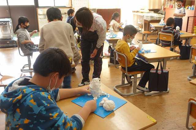 2年生(紙粘土でライオンや恐竜を作っていました)