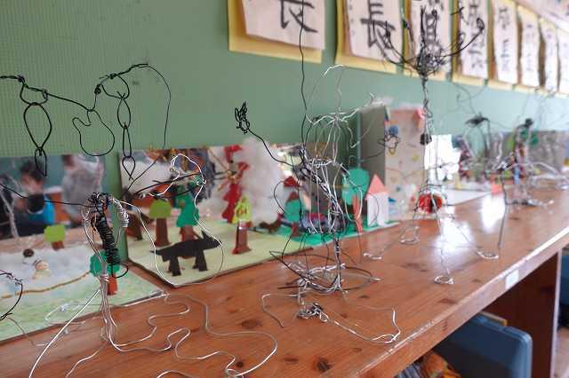 5年生(この時間は図工ではありませんでしたが、教室には「針金アート」)