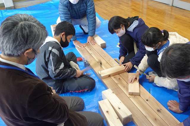 6年生(阿蘇地域振興局林務課・森づくり協議会の協力で卒業制作)