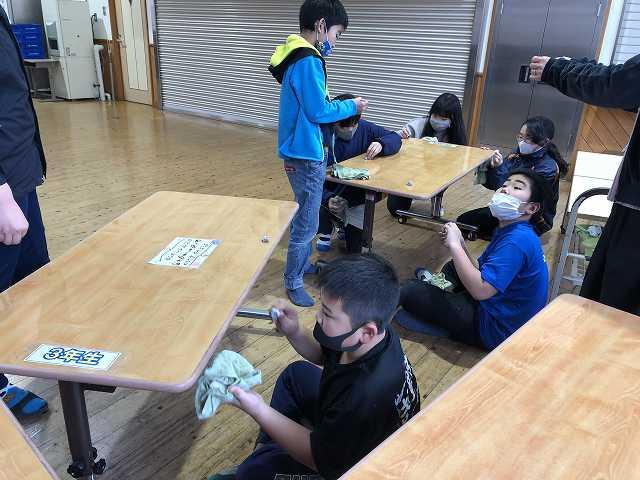 本日6校時は委員会活動でした。給食委員会では配膳台磨きがあっていました。ランチルーム(ふれあい広場)と各教室の配膳台を一台一台丁寧に磨いてくれました。水は冷たく手もかじかみましたが、磨き終わったテーブルはピカピカで達成感がありました。給食委員会のみなさん、ありがとう!
