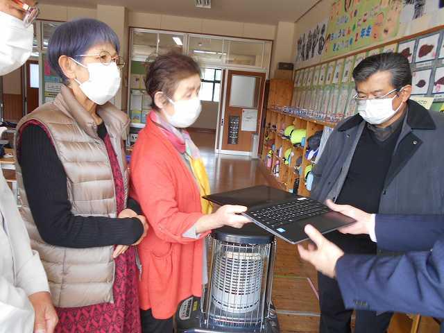 GIGAスクール構想で配備されるタブレット端末について教頭が説明しています。