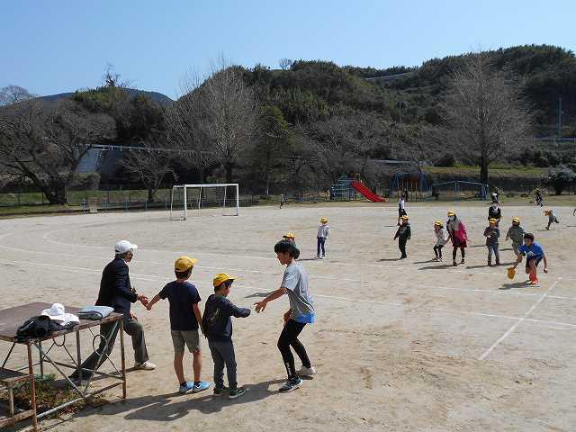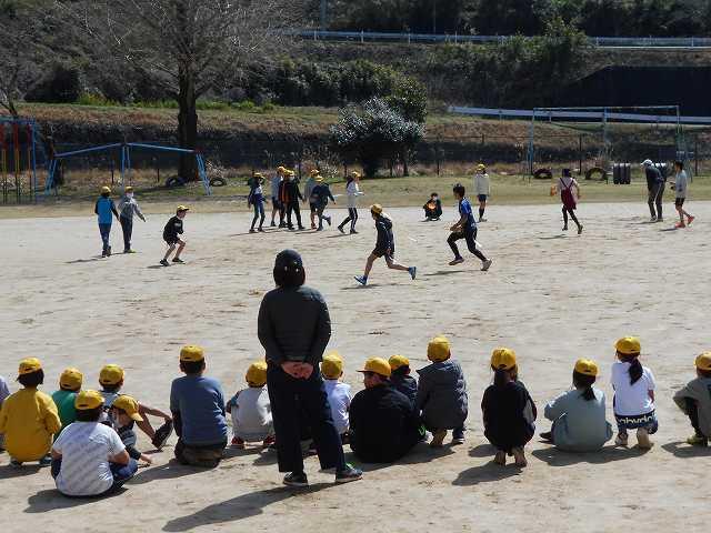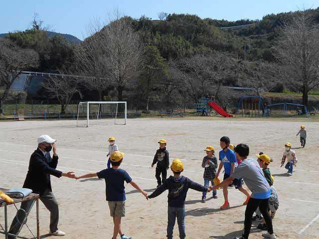 暖かな春の日差しの中、卒業を目前にした6年生と1年生が昼休みに「だるまさんが転んだ」をしていました。とても楽しそうに遊ぶ姿にほっこりします。1年生は6年生との思い出がまたひとつ増えました。