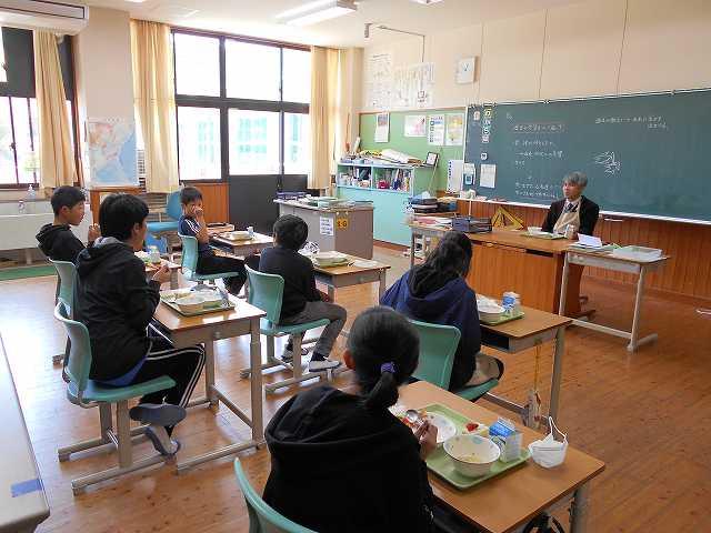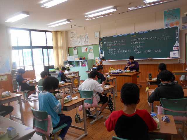 山西小より栄養職員の先生を招き、食育講話(授業)をしていただきました。