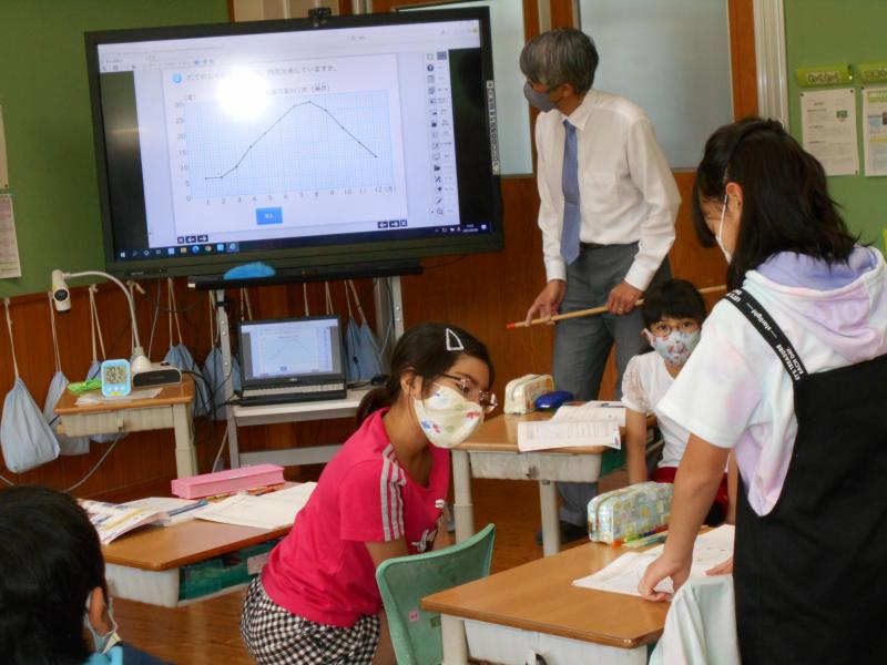 6月16日(水)、本年度初めての研究授業がありました。3年生、国語「まいごのかぎ」の授業でした。子どもたちはタブレットで心情曲線を描き、中心人物の気持ちの変化の理由を考えていきました。