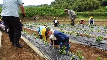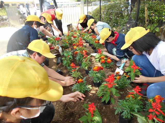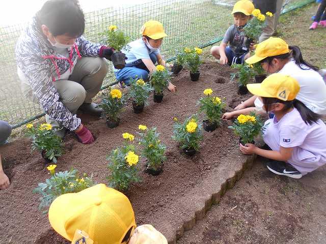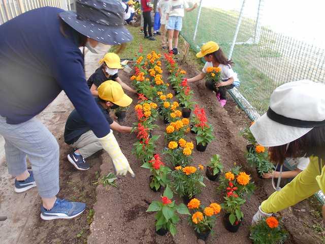 植え方を学んだ子どもたちは、早速、苗を植えました。力強く、正確に植えました。