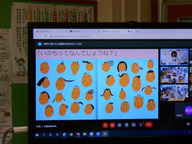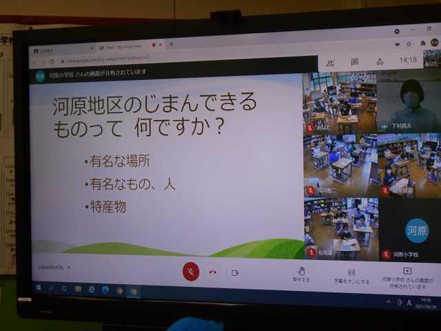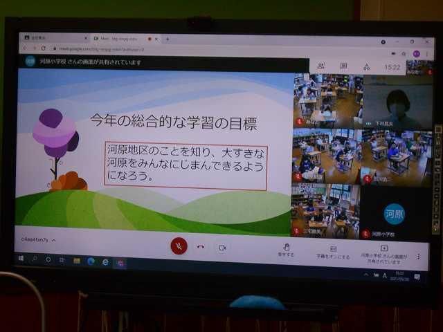 本年度、「総合的な学習の時間」70時間のうち35時間を学年を解体して「大好きかわはら!タイム」(仮称)として学習活動を行います。子どもたちの主体的な学びとなるよう工夫した学習活動に挑戦します!本日はその初回の学習でした。本来は3年生~6年生が一緒に学習をするのですが、密を避けるために、リモートで各教室をつないで行いました。どんな学習になるかわくわくします。