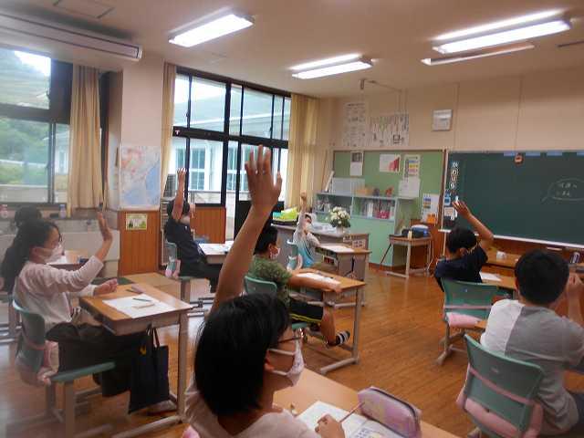 6月4日~6月10日は歯の健康週間です。4年生が養護教諭と一緒に歯の健康について学習していました。噛む事と歯の健康について楽しく学んでいました。