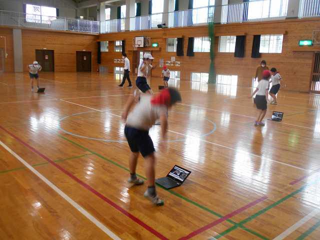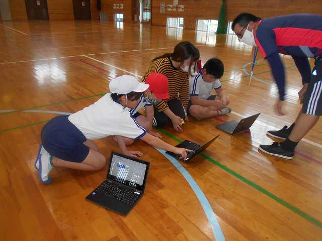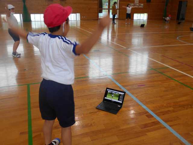 ご存じの通りGIGAスクール構想を受け、本校でも昨年度末に一人一台のタブレットパソコンが配備されました。子どもたちも少しずつ慣れてきています。今日は教頭先生がタブレットを使いながら4年生の体育の授業をされていました。