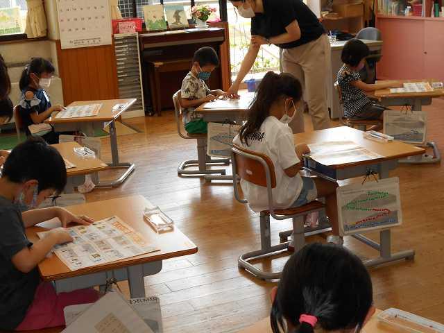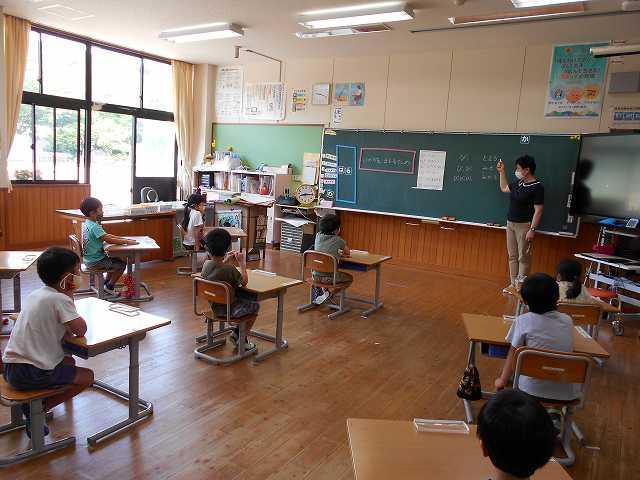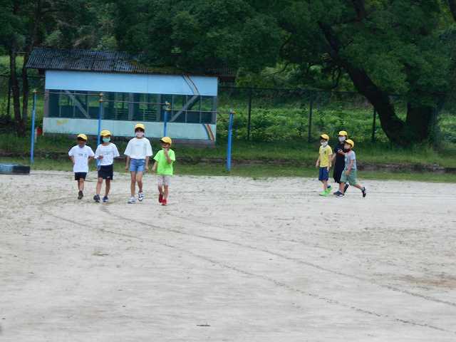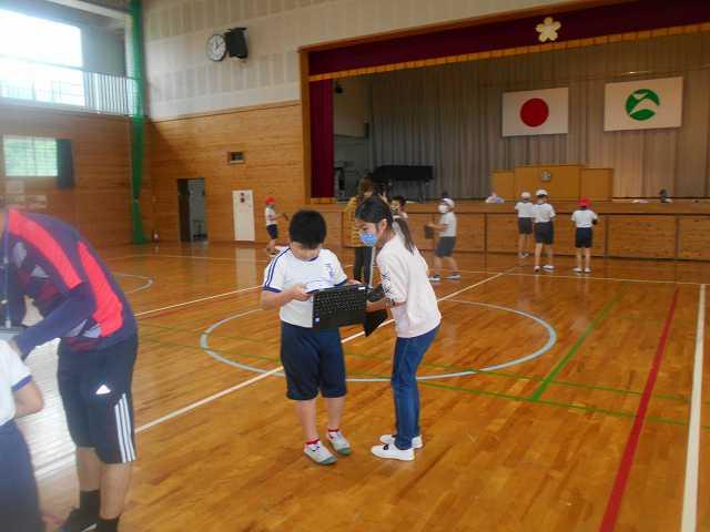 昨日の雨もあがり、暑くもなく、体力テスト日和となりました。密を避けて、2学年ごとに実施しました。1年と6年、2年と5年、3年と4年のペア学年です。1年生は初めての体力テストでしたが上手に取り組むことができました。