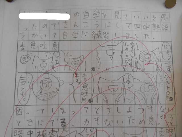 その横に、友だちの自学を参考にしました・・・という自学・・学び合っています!
