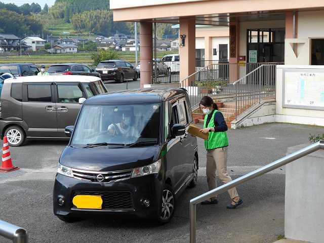 企画委員長から門出・田中地区の登校班長さんに「きれいに並べたでしょう」の表彰状を渡しました