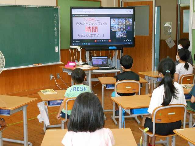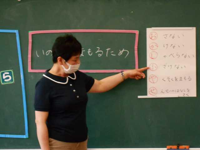6月は「心のきずなを深める」月間です。取組の一つとして教頭先生から「いのちのおはなし」がありました。105歳で亡くなられた聖路加国際病院の日野原重明・名誉院長の「いのちのおはなし」を使って「命は人間がもっている時間のこと」、「だれかのために時間を使ってください」と日野原先生のメッセージを伝えられました。