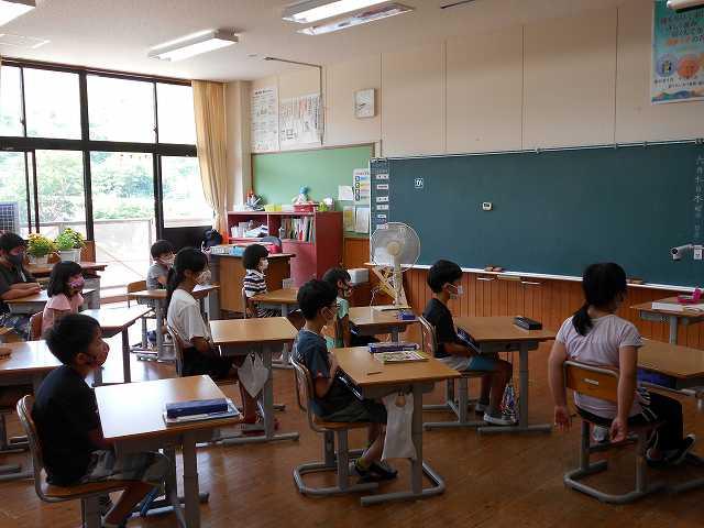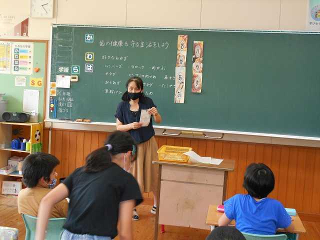 本年度から歯磨きタイムの時間を変更しました。昼休みの後、掃除の前の時間に全校一斉に校内放送の合図で、各学級で映像をみながら歯磨きを行います。全校児童が同じ時間に揃って歯磨きすることで磨き残しや、磨き忘れがなくなり、感染防止の対策にもなります。