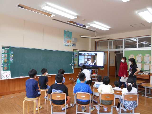 6月15日、南部なかよし交流会がリーモートで行われました。ひまわり1組・2組の子どもたちも元気に参加しました。6年生と5年生の子どもたちが学校紹介を行い、その後一人ひとり自己紹介をしました。緊張した様子でしたがとても上手に自己紹介ができ、よその学校の発表にも感想を返していました。