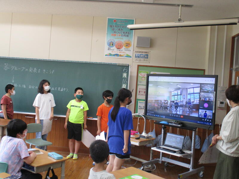 3,4,5,6年生が一緒に学習を進める「大好き、かわはらタイム」、4チームにわかれてスタートしています。本日はそれぞれのチームの計画を交流し合いました。