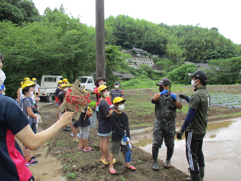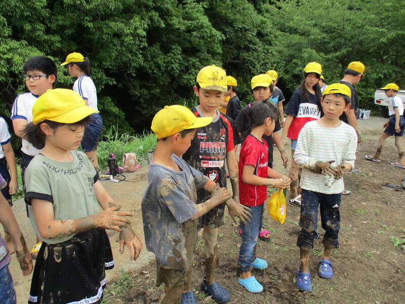 昨日の天気予報では雨マークだったのですが、今日は絶好の田植え日和でした。4~6年生が農業ボランティアのお二人の指導のもと、田植えを行いました。4年生は初めての田植え体験でしたが、だんだん慣れて後半は上手に苗を植えることができるようになりました。みんな泥んこになって田んぼの泥の感触を楽しんでいました。今後は5年生が除草作業や観察をしながら学習していきます。