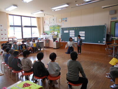 2月19日(木)の午後、新入児及び新入児保護者を対象とした「体験入学」が行われました。新1年生の子どもたちは、1年生教室に招かれ、クイズやいす取りゲームなどをして楽しみました。1年生は、前々から新しい1年生のために準備を進めており、本番はちょっぴり緊張しながらも、しっかりお兄さん・お姉さんぶりを発揮し、交流会を盛り上げていました。新1年生の子どもたちが笑顔で交流会に参加していたのが、印象的でした。保護者の方々には、「親の学びプログラム」に参加してもらいました。進行役として、郡市でご活躍中の鞭馬さん(親の学びトレーナー)に来ていただき、子どもの入学に向けて不安なことや心配なこと、わが子に期待することなどをお互い小グループで話し合う時間を設けていただきました。園が違ったり、河原小学校が初めてだったりという方もおられたので、保護者どうしが知り合ういいきっかけづくりになったと思います。4月の入学式を楽しみにしております!