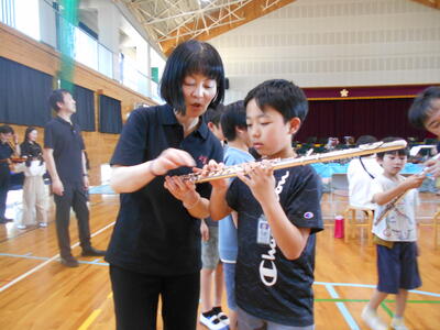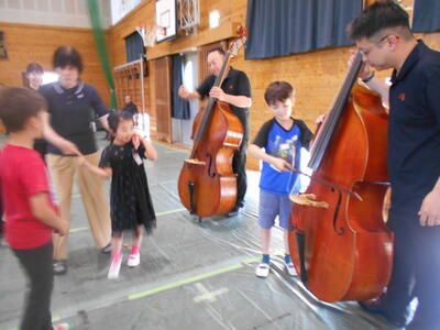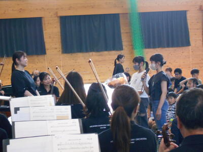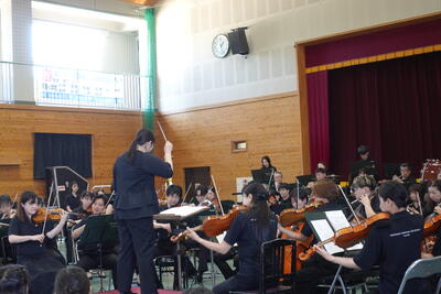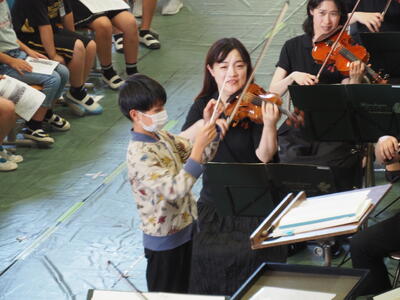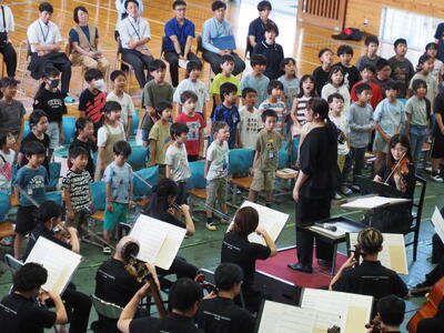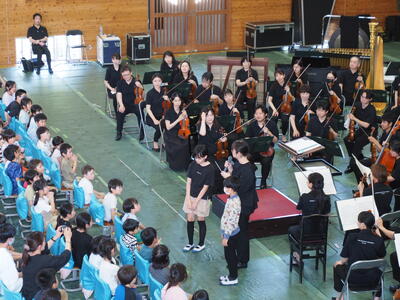 6月5日(木)、舞台芸術等総合支援事業(学校巡回公演)の一つとして、広島交響楽団による「オーケストラで巡るファンタジー・ワールド」が、河原小学校の体育館で開かれました。これは、独⽴⾏政法⼈⽇本芸術⽂化振興会の採択を受けた分野のトップレベルの団体が、実施校において実演芸術の公演・メディア芸術の体験プログラムを実施してくれている事業で、前年度中に村教育委員会より事前申請をしてもらい実現しました。オーケストラならではの迫力と魅力に、子どもたちは大いに魅了されていました。楽器の体験コーナーや指揮者体験などもあり、子どもたちも来校された保護者の方や地域の方も楽しみながら参加しておられました。最後に、河原小学校の校歌をオーケストラ演奏に合わせて、声高らかに歌う子どもたちの姿と歌声は、感動そのものでした。体育館が、感動に包まれた時間となりました。近年、感染症対策等で、なかなか芸術を体験する機会も減っていましたので、子どもたちの感性を育むこのような機会を与えていただき、本当にありがたいと思いました。