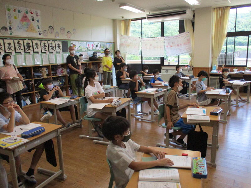 本日、授業参観、地区児童会、学級懇談会を行いました。今回は人数制限をしないで実施しました。暑い中の参観ありがとうございました。子どもたちはとても嬉しそうでした。5年生は親子で算数の問題を解いていました。2年生は生活科で見つけた虫を観察し、まとめたことをポスターセッションでおうちの人に伝えていました。