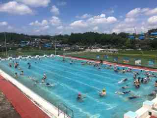今年は、震災や豪雨の影響で、水量や水質を維持することが難しい状況でしたが、絶好の天候の下、プール開きを迎えることができました。子どもたちは、先週プール掃除を行い、自分達の手できれいにしたプールで学習できる日を楽しみにしていました。いざ、プールに入ると、子どもたちの歓声が学校周辺に響きます。小高い場所にあるプールから地域を見渡すと、ブルーシートに覆われた屋根がまだ多く見られます。地域の一刻も早い復旧を願いながら、今年のプール開きを無事終えました。