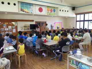 July19(Tuesday) Today was the day of the farewell of the Kara teacher of ALT.Last year,Kara teacher who came to Nishihara village from California,with always a smile,was a popular person from the children.